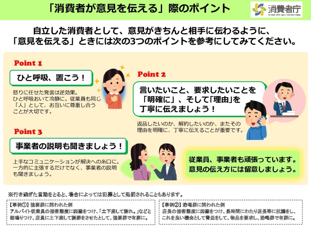 消費者庁では、カスタマーハラスメント防止のための消費者向け普及・啓発活動を行っていますので、ポスターの内容も事例などが記載されていて、消費者の方にわかりやすい内容になっていますね。